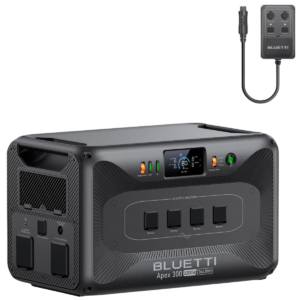 Apex 300は、家庭用バックアップからアウトドア、キャンピングカー用途までカバーできる大容量・高出力ポータブル電源です。約2765Whの大容量バッテリーと最大3200Wの高出力を備えており、冷蔵庫や電子レンジなどの高消費電力家電も長時間安定して稼働させることができます。